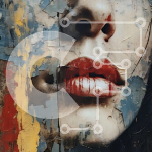 Intra Συλλεκτικό Ξύλινο Παζλ Plywood 4mm - Γυναίκα με ζωγραφισμένο πρόσωπο και κόκκινο κραγιόν ενάντια σε έναν τοίχο με υφή Σε Ξύλινο Κουτί - Διαστάσεις Puzzle: 10x10 cm – 25 κομμάτια