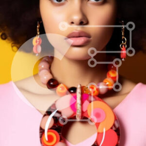 Intra Συλλεκτικό Ξύλινο Παζλ Plywood 4mm - Νεαρή γυναίκα με πορτοκαλί και ροζ αξεσουάρ κοσμημάτων Σε Ξύλινο Κουτί - Διαστάσεις Puzzle: 10x10 cm – 25 κομμάτια