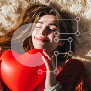 Intra Συλλεκτικό Ξύλινο Παζλ Plywood 4mm - Νεαρή γυναίκα με μπαλόνι σε σχήμα καρδιάς Σε Ξύλινο Κουτί - Διαστάσεις Puzzle: 10x10 cm – 25 κομμάτια