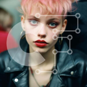 Intra Συλλεκτικό Ξύλινο Παζλ Plywood 4mm - Νεαρή γυναίκα με ροζ μαλλιά και τατουάζ Σε Ξύλινο Κουτί - Διαστάσεις Puzzle: 10x10 cm – 25 κομμάτια