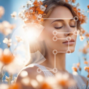 Intra Συλλεκτικό Ξύλινο Παζλ Plywood 4mm - Νεαρή γυναίκα με πορτοκαλί λουλούδι χωράφι με λουλούδια στα μαλλιά Σε Ξύλινο Κουτί - Διαστάσεις Puzzle: 10x10 cm – 25 κομμάτια