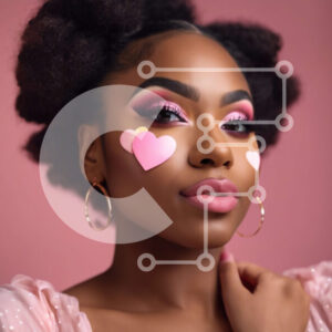 Intra Συλλεκτικό Ξύλινο Παζλ Plywood 4mm - Νεαρή γυναίκα με ροζ μακιγιάζ και αυτοκόλλητα σε σχήμα καρδιάς στο πρόσωπό της Σε Ξύλινο Κουτί - Διαστάσεις Puzzle: 10x10 cm – 25 κομμάτια