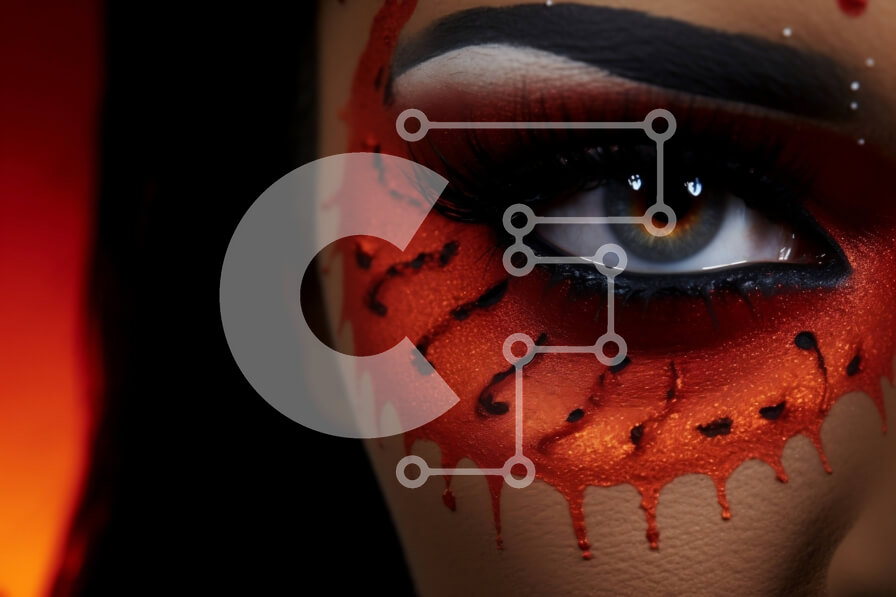 Intra Συλλεκτικό Ξύλινο Παζλ Plywood 4mm - Γυναίκα με κόκκινο και πορτοκαλί μακιγιάζ στα μάτια της Σε Ξύλινο Κουτί - Διαστάσεις Puzzle: 10x10 cm – 25 κομμάτια