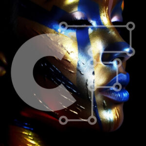 Intra Συλλεκτικό Ξύλινο Παζλ Plywood 4mm - Όμορφη γυναίκα με μπλε και χρυσό μεταλλικό χρώμα προσώπου Σε Ξύλινο Κουτί - Διαστάσεις Puzzle: 10x10 cm – 25 κομμάτια