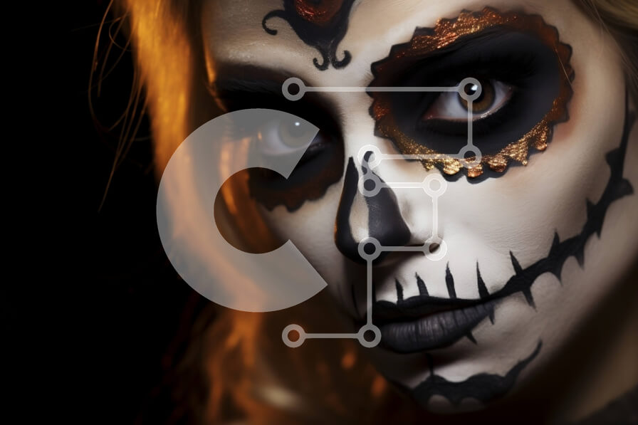Intra Συλλεκτικό Ξύλινο Παζλ Plywood 4mm - Γυναίκα με μακιγιάζ Sugar Skull για τη γιορτή της ημέρας των νεκρών Σε Ξύλινο Κουτί - Διαστάσεις Puzzle: 10x10 cm – 25 κομμάτια