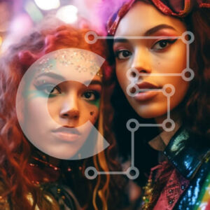 Intra Συλλεκτικό Ξύλινο Παζλ Plywood 4mm - Πολύχρωμο μακιγιάζ και κοστούμια σε δύο γυναίκες με φόντο νέον Σε Ξύλινο Κουτί - Διαστάσεις Puzzle: 10x10 cm – 25 κομμάτια