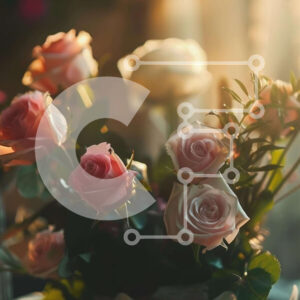 Intra Συλλεκτικό Ξύλινο Παζλ Plywood 4mm - Ροζ τριαντάφυλλα ρύθμιση με αφηρημένο φόντο Σε Ξύλινο Κουτί - Διαστάσεις Puzzle: 10x10 cm – 25 κομμάτια