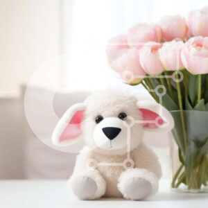Intra Συλλεκτικό Ξύλινο Παζλ Plywood 4mm - Ροζ τουλίπες σε λευκό βάζο με αρκουδάκι και φλοράλ διακόσμηση Σε Ξύλινο Κουτί - Διαστάσεις Puzzle: 10x10 cm – 25 κομμάτια