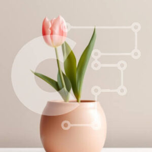 Intra Συλλεκτικό Ξύλινο Παζλ Plywood 4mm - Ροζ τουλίπα σε ροδακινί κεραμικό δοχείο Σε Ξύλινο Κουτί - Διαστάσεις Puzzle: 10x10 cm – 25 κομμάτια