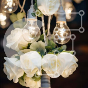 Intra Συλλεκτικό Ξύλινο Παζλ Plywood 4mm - Σύνθεση λευκών τριαντάφυλλων και λαμπτήρων Σε Ξύλινο Κουτί - Διαστάσεις Puzzle: 10x10 cm – 25 κομμάτια