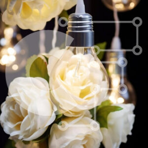 Intra Συλλεκτικό Ξύλινο Παζλ Plywood 4mm - Συστάδα λευκών τριαντάφυλλων που κρέμονται από λαμπτήρες φωτός Σε Ξύλινο Κουτί - Διαστάσεις Puzzle: 10x10 cm – 25 κομμάτια