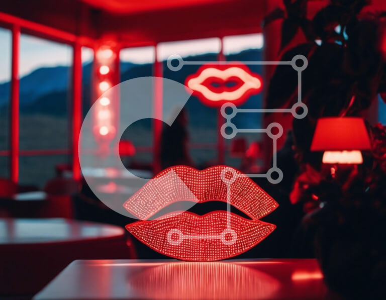 Intra Συλλεκτικό Ξύλινο Παζλ Plywood 4mm - Φωτιζόμενα κόκκινα χείλη γλυπτό σε ένα τραπέζι Σε Ξύλινο Κουτί - Διαστάσεις Puzzle: 10x10 cm – 25 κομμάτια
