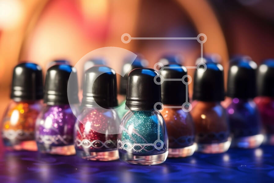 Intra Συλλεκτικό Ξύλινο Παζλ Plywood 4mm - Φωτεινή και πολύχρωμη εικόνα μεταλλικού μωβ μπουκαλιού βερνικιού νυχιών Σε Ξύλινο Κουτί - Διαστάσεις Puzzle: 10x10 cm – 25 κομμάτια