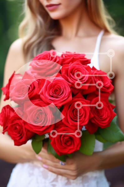 Intra Συλλεκτικό Ξύλινο Παζλ Plywood 4mm - Γυναίκα που κρατά ένα μπουκέτο με κόκκινα τριαντάφυλλα Σε Ξύλινο Κουτί - Διαστάσεις Puzzle: 10x10 cm – 25 κομμάτια