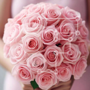 Intra Συλλεκτικό Ξύλινο Παζλ Plywood 4mm - Γυναίκα που κρατά ένα μεγάλο μπουκέτο με ροζ τριαντάφυλλα Σε Ξύλινο Κουτί - Διαστάσεις Puzzle: 10x10 cm – 25 κομμάτια