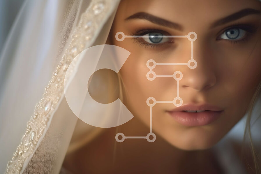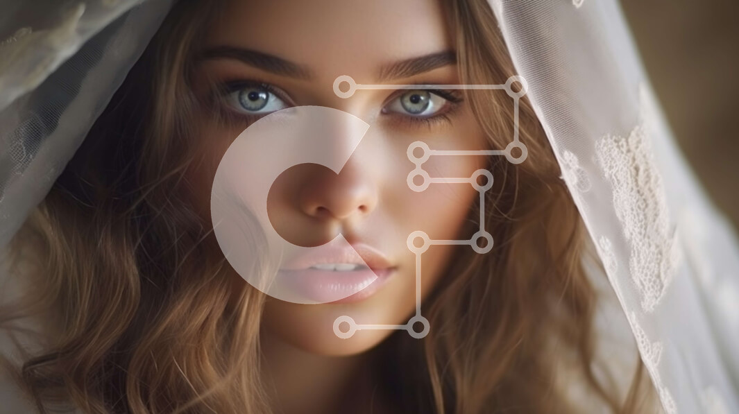 Intra Συλλεκτικό Ξύλινο Παζλ Plywood 4mm - Εκπληκτική νύφη με λευκό πέπλο γάμου με μακριά ξανθά μαλλιά και μπλε μάτια Σε Ξύλινο Κουτί - Διαστάσεις Puzzle: 10x10 cm – 25 κομμάτια