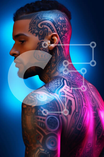 Intra Συλλεκτικό Ξύλινο Παζλ Plywood 4mm - Άνδρας με περίπλοκα τατουάζ στην πλάτη, τους ώμους και το στήθος Σε Ξύλινο Κουτί - Διαστάσεις Puzzle: 10x10 cm – 25 κομμάτια