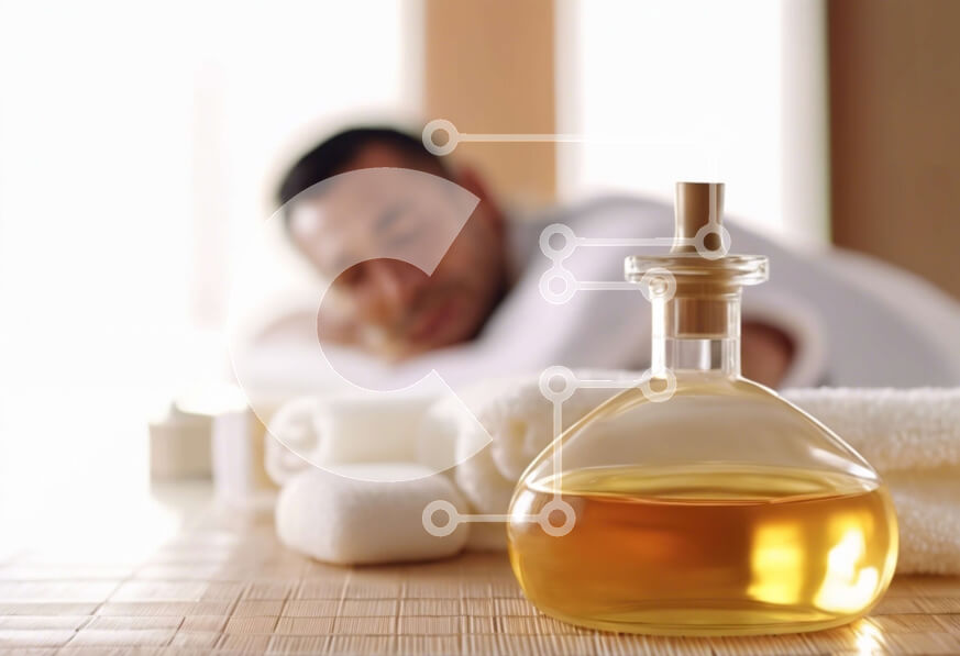 Intra Συλλεκτικό Ξύλινο Παζλ Plywood 4mm - Άνδρας ξαπλωμένος σε τραπέζι μασάζ με μπουκάλι λαδιού Σε Ξύλινο Κουτί - Διαστάσεις Puzzle: 10x10 cm – 25 κομμάτια
