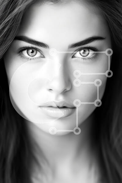 Intra Συλλεκτικό Ξύλινο Παζλ Plywood 4mm - Εκπληκτικό ασπρόμαυρο πορτρέτο μιας γυναίκας με μακριά σκούρα μαλλιά και πράσινα μάτια Σε Ξύλινο Κουτί - Διαστάσεις Puzzle: 10x10 cm – 25 κομμάτια
