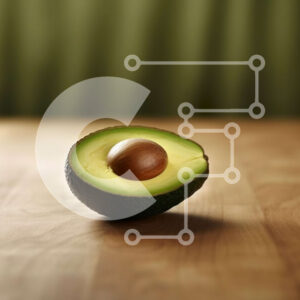 Intra Συλλεκτικό Ξύλινο Παζλ Plywood 4mm - Φρέσκο ώριμο αβοκάντο σε ξύλινο τραπέζι με φόντο πράσινη κουρτίνα Σε Ξύλινο Κουτί - Διαστάσεις: 10x10 cm – 25 κομμάτια