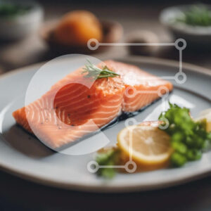 Intra Συλλεκτικό Ξύλινο Παζλ Plywood 4mm - Φρέσκος και καλομαγειρεμένος σολομός με άνηθο σε λευκό πιάτο Σε Ξύλινο Κουτί - Διαστάσεις: 10x10 cm – 25 κομμάτια