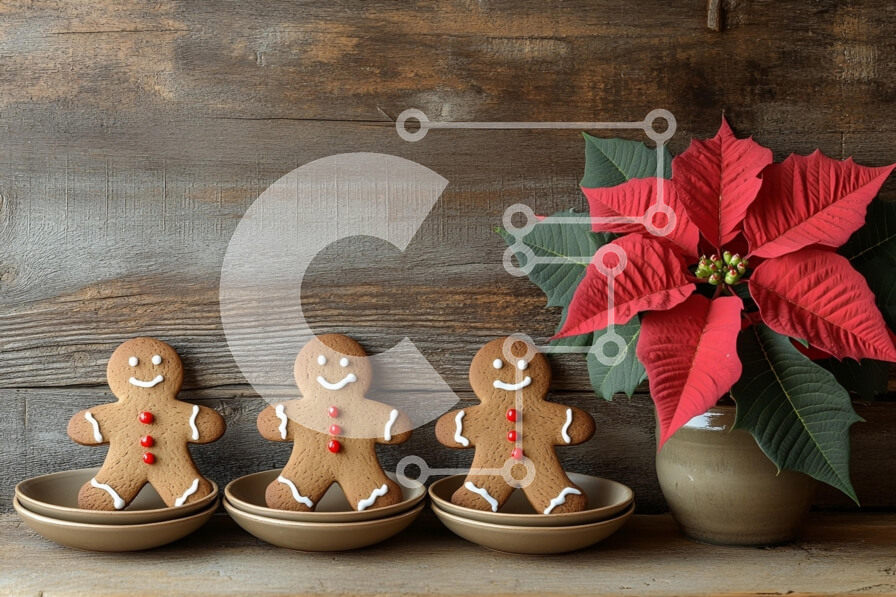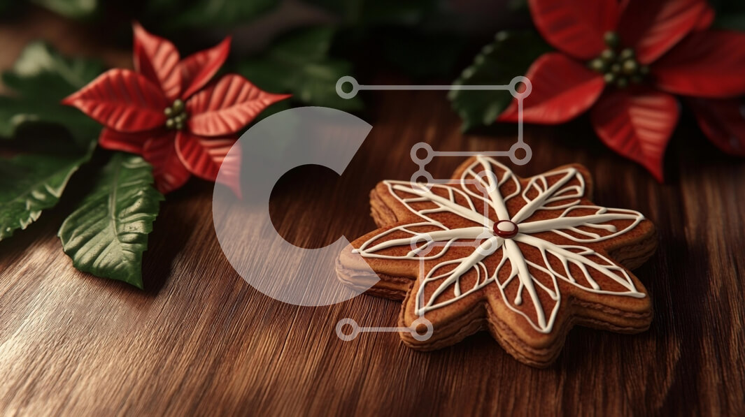 Intra Συλλεκτικό Ξύλινο Παζλ Plywood 4mm - Γιορτινά στολισμένο μπισκότο μελόψωμο με ποϊνσέτια Σε Ξύλινο Κουτί - Διαστάσεις: 10x10 cm – 25 κομμάτια