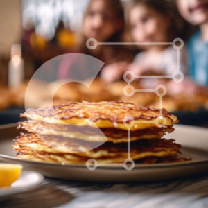 Intra Συλλεκτικό Ξύλινο Παζλ Plywood 4mm - Φρεσκοφτιαγμένη στοίβα από τηγανίτες με τα παιδιά Σε Ξύλινο Κουτί - Διαστάσεις: 10x10 cm – 25 κομμάτια