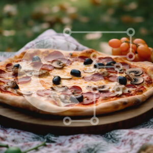 Intra Συλλεκτικό Ξύλινο Παζλ Plywood 4mm - Φρεσκοφτιαγμένη πίτσα με ελιές, μανιτάρια και πεπερόνι σε ξύλινη σανίδα Σε Ξύλινο Κουτί - Διαστάσεις: 10x10 cm – 25 κομμάτια