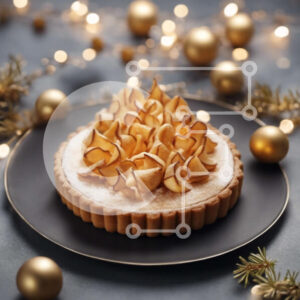 Intra Συλλεκτικό Ξύλινο Παζλ Plywood 4mm - Γιορτινή τάρτα μήλου με χρυσά στολίδια και χρυσά στολίδια Σε Ξύλινο Κουτί - Διαστάσεις: 10x10 cm – 25 κομμάτια