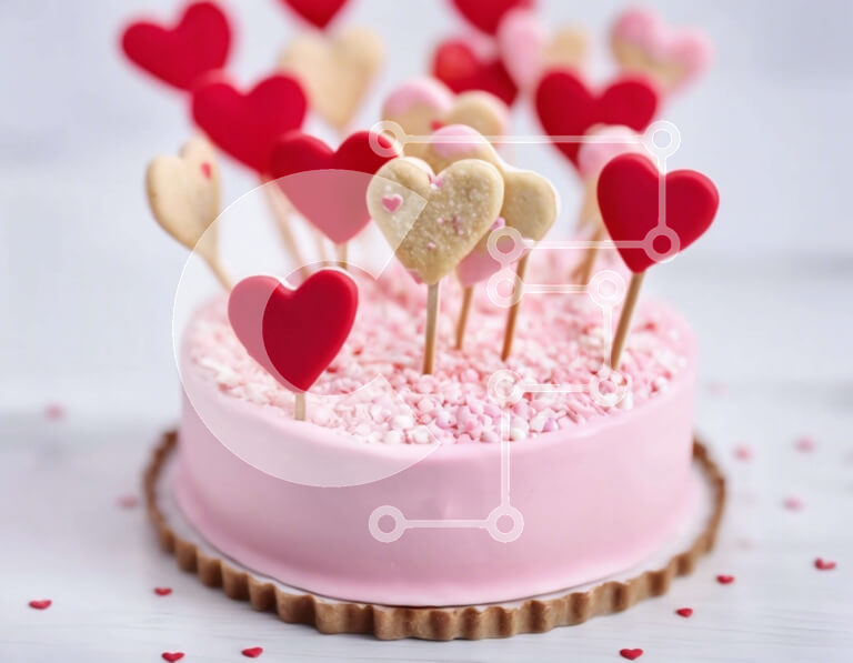 Intra Συλλεκτικό Ξύλινο Παζλ Plywood 4mm - Γιορτινή ροζ τούρτα με μπισκότα σε σχήμα καρδιάς για την ημέρα του Αγίου Βαλεντίνου Σε Ξύλινο Κουτί - Διαστάσεις: 10x10 cm – 25 κομμάτια