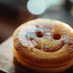 Intra Συλλεκτικό Ξύλινο Παζλ Plywood 4mm - Χαμογελαστό μπισκότο με ζάχαρη άχνη σε ξύλινη επιφάνεια Σε Ξύλινο Κουτί - Διαστάσεις: 10x10 cm – 25 κομμάτια