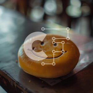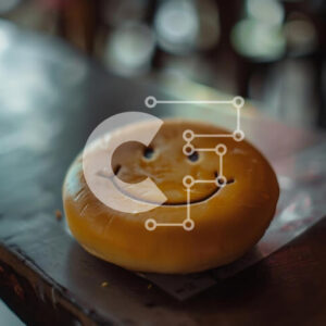 Intra Συλλεκτικό Ξύλινο Παζλ Plywood 4mm - Χαμογελαστό ψωμί σε σχήμα προσώπου σε ξύλινο τραπέζι Σε Ξύλινο Κουτί - Διαστάσεις: 10x10 cm – 25 κομμάτια