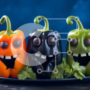 Intra Συλλεκτικό Ξύλινο Παζλ Plywood 4mm - Χαμογελώντας πιπεριές στο μπλε πιάτο Σε Ξύλινο Κουτί - Διαστάσεις: 10x10 cm – 25 κομμάτια