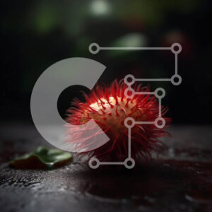 Intra Συλλεκτικό Ξύλινο Παζλ Plywood 4mm - Γκρο πλαν φωτογραφία του κόκκινου καρπού Rambutan σε σκούρο ξύλο Σε Ξύλινο Κουτί - Διαστάσεις: 10x10 cm – 25 κομμάτια