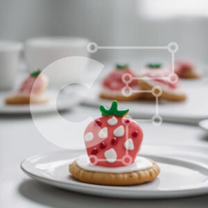 Intra Συλλεκτικό Ξύλινο Παζλ Plywood 4mm - Γλυκά και διασκεδαστικά μπισκότα σε σχήμα φράουλας σε λευκά πιάτα Σε Ξύλινο Κουτί - Διαστάσεις: 10x10 cm – 25 κομμάτια