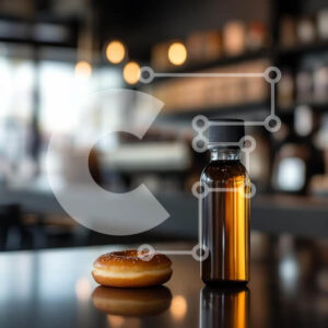 Intra Συλλεκτικό Ξύλινο Παζλ Plywood 4mm - Γυαλισμένο ντόνατ και μπουκάλι σκουρόχρωμο σιρόπι σε χώρο καφέ Σε Ξύλινο Κουτί - Διαστάσεις: 10x10 cm – 25 κομμάτια