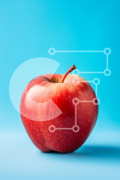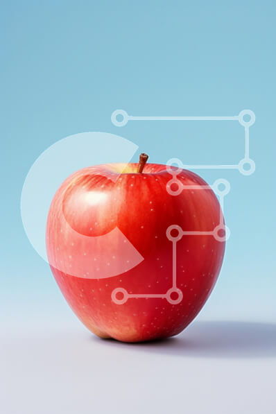 Intra Συλλεκτικό Ξύλινο Παζλ Plywood 4mm - Γυαλιστερό κόκκινο μήλο σε λευκή επιφάνεια με μπλε φόντο Σε Ξύλινο Κουτί - Διαστάσεις: 10x10 cm – 25 κομμάτια