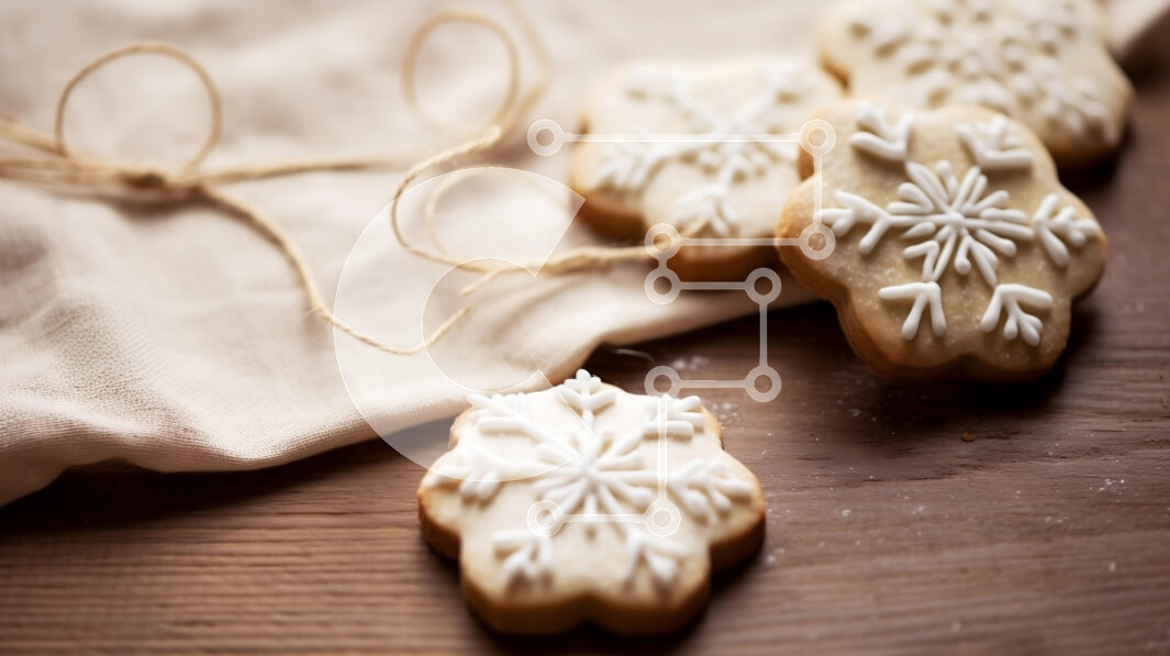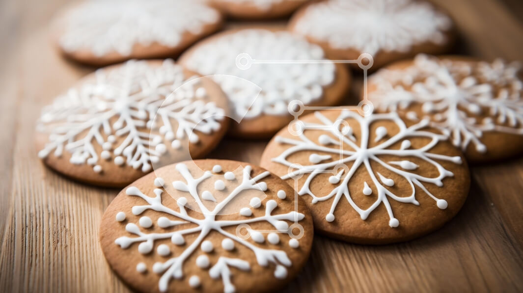 Intra Συλλεκτικό Ξύλινο Παζλ Plywood 4mm - Διακοσμημένα μπισκότα νιφάδας χιονιού σε ξύλινη επιφάνεια Σε Ξύλινο Κουτί - Διαστάσεις: 10x10 cm – 25 κομμάτια