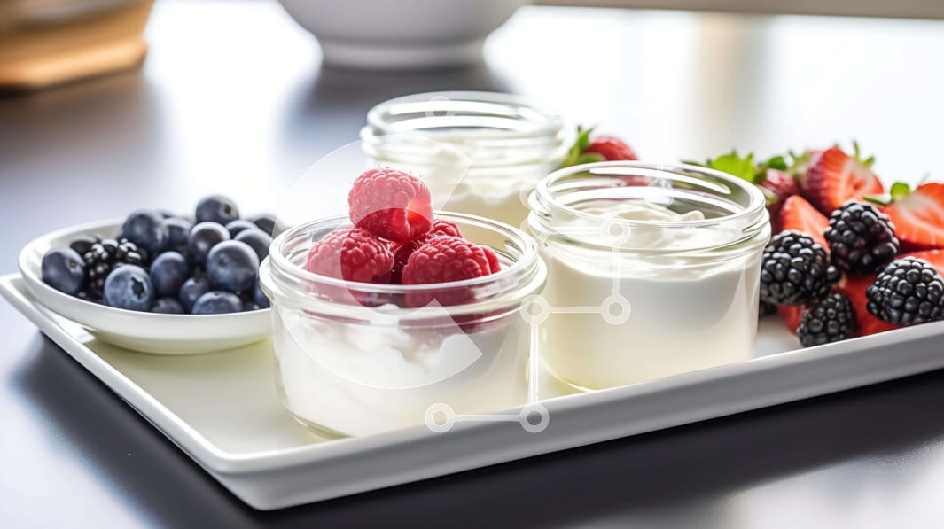 Intra Συλλεκτικό Ξύλινο Παζλ Plywood 4mm - Διάφορα βάζα γιαουρτιού με μούρα και βατόμουρα σε λευκό δίσκο Σε Ξύλινο Κουτί - Διαστάσεις: 10x10 cm – 25 κομμάτια