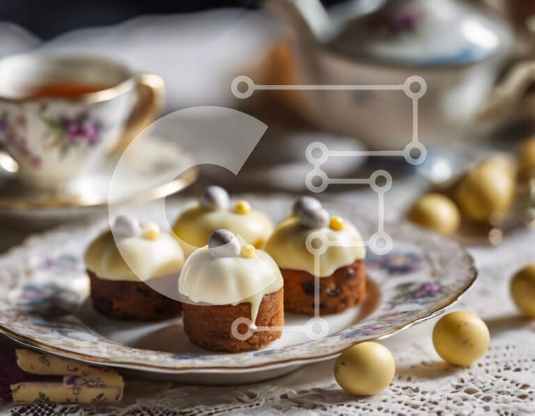Intra Συλλεκτικό Ξύλινο Παζλ Plywood 4mm - Διάφορα επιδόρπια και τσάι με θέμα το Πάσχα σε ένα άσπρο πιάτο Σε Ξύλινο Κουτί - Διαστάσεις: 10x10 cm – 25 κομμάτια