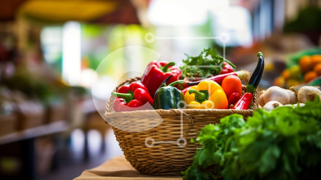 Intra Συλλεκτικό Ξύλινο Παζλ Plywood 4mm - Διάφορα φρούτα και λαχανικά σε ψάθινο καλάθι στην υπαίθρια αγορά Σε Ξύλινο Κουτί - Διαστάσεις: 10x10 cm – 25 κομμάτια