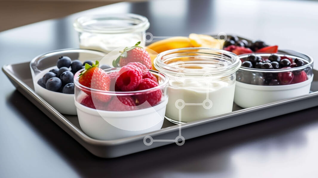 Intra Συλλεκτικό Ξύλινο Παζλ Plywood 4mm - Διάφορα φρούτα και γιαούρτι σε δίσκο Σε Ξύλινο Κουτί - Διαστάσεις: 10x10 cm – 25 κομμάτια