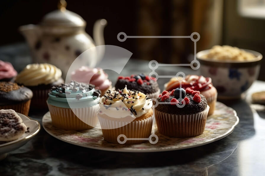 Intra Συλλεκτικό Ξύλινο Παζλ Plywood 4mm - Διάφορες γεύσεις Cupcakes σε τραπέζι με τσαγιέρα και φλιτζάνια Σε Ξύλινο Κουτί - Διαστάσεις: 10x10 cm – 25 κομμάτια