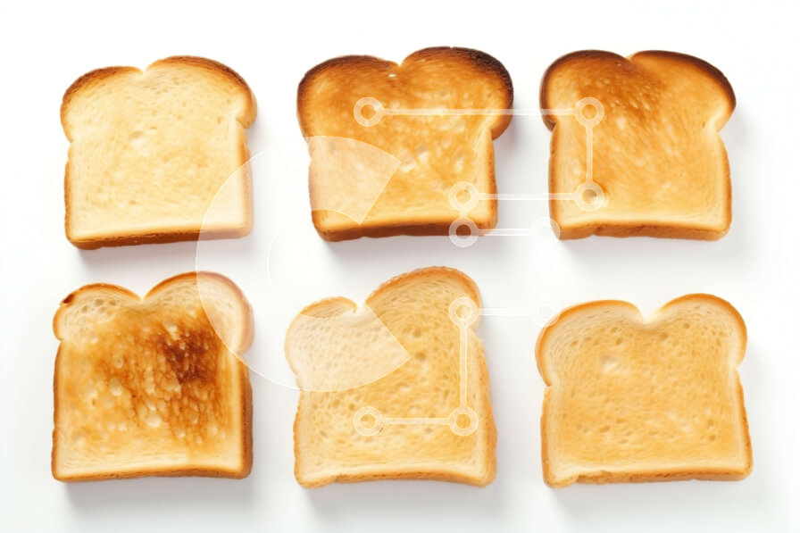 Intra Συλλεκτικό Ξύλινο Παζλ Plywood 4mm - Διάφορες φέτες τοστ με διαφορετικούς βαθμούς καμένων μερών Σε Ξύλινο Κουτί - Διαστάσεις: 10x10 cm – 25 κομμάτια