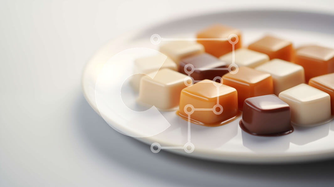 Intra Συλλεκτικό Ξύλινο Παζλ Plywood 4mm - Διάφοροι κύβοι καραμέλας σε ένα λευκό πιάτο Σε Ξύλινο Κουτί - Διαστάσεις: 10x10 cm – 25 κομμάτια
