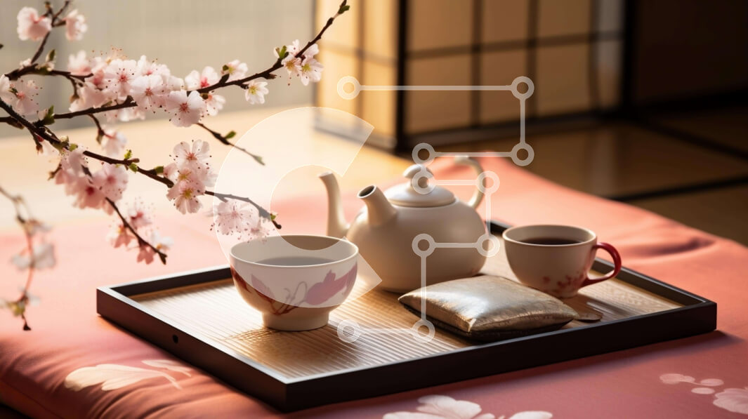 Intra Συλλεκτικό Ξύλινο Παζλ Plywood 4mm - Δίσκος με τσάι, καφέ και σνακ με ανθισμένη κερασιά Σε Ξύλινο Κουτί - Διαστάσεις: 10x10 cm – 25 κομμάτια