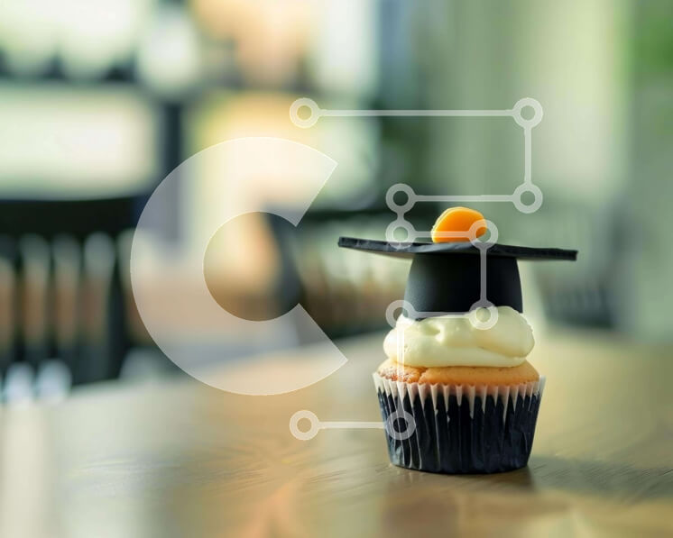 Intra Συλλεκτικό Ξύλινο Παζλ Plywood 4mm - Cupcake με καπάκι αποφοίτησης σε δρύινο τραπέζι Σε Ξύλινο Κουτί - Διαστάσεις: 10x10 cm – 25 κομμάτια
