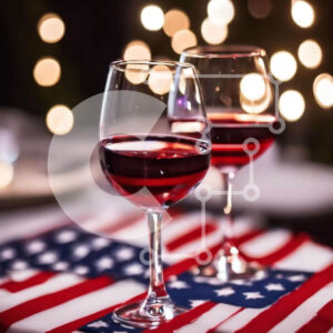Intra Συλλεκτικό Ξύλινο Παζλ Plywood 4mm - Δύο ποτήρια κόκκινο κρασί σε τραπεζομάντιλο αμερικανικής σημαίας Σε Ξύλινο Κουτί - Διαστάσεις: 10x10 cm – 25 κομμάτια