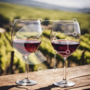 Intra Συλλεκτικό Ξύλινο Παζλ Plywood 4mm - Δύο ποτήρια κόκκινο κρασί σε ξύλινο τραπέζι με θέα στον αμπελώνα Σε Ξύλινο Κουτί - Διαστάσεις: 10x10 cm – 25 κομμάτια