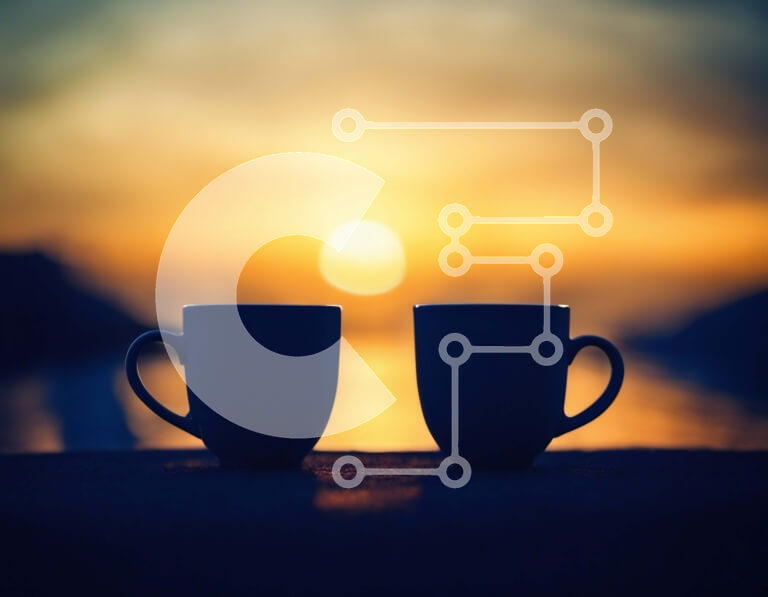 Intra Συλλεκτικό Ξύλινο Παζλ Plywood 4mm - Δύο φλιτζάνια καφέ με φόντο το ηλιοβασίλεμα Σε Ξύλινο Κουτί - Διαστάσεις: 10x10 cm – 25 κομμάτια
